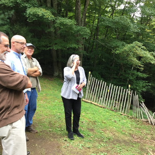 (Right Photo) Building committee members inspect Peter Hamm’s completed timber frame repairs.